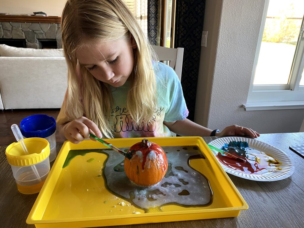 What do kids learn with fizzy pumpkin painting?