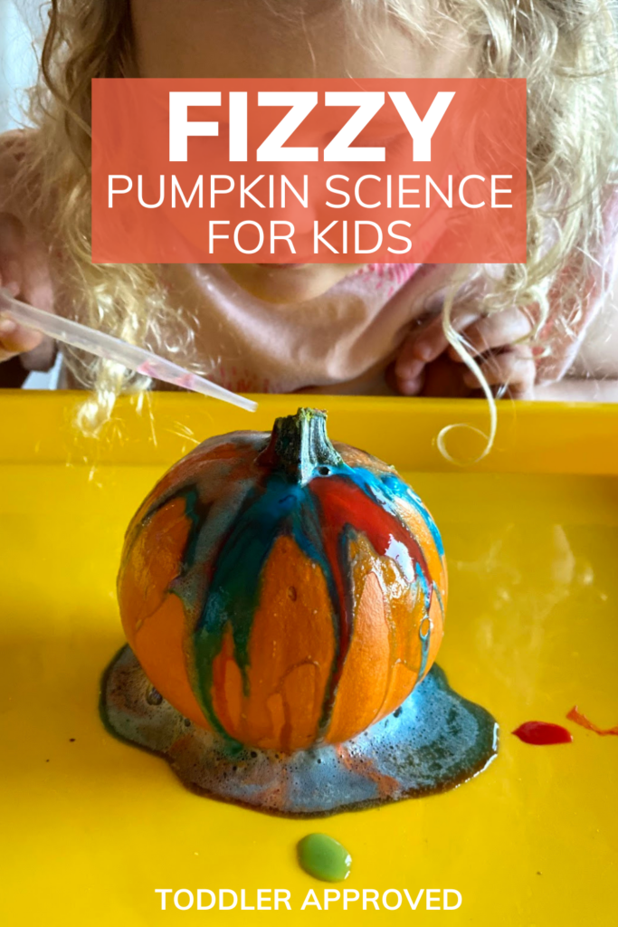 Inside this post we share a simple fizzy preschool activity for Halloween! This science experiment with pumpkins is easy to set up & so fun!