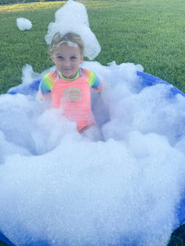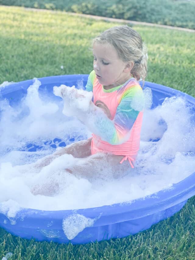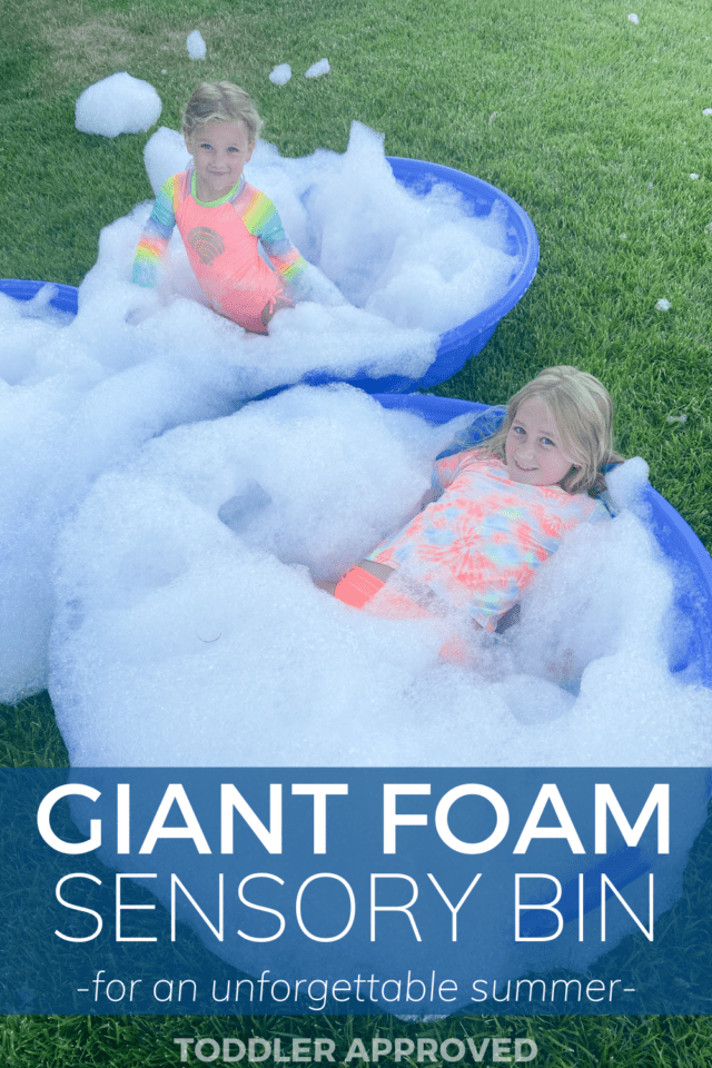 Making homemade bubbles and bubble snakes are always a hit with kids. A GIANT foam sensory bin kicks it up a notch for truly amazing backyard fun!