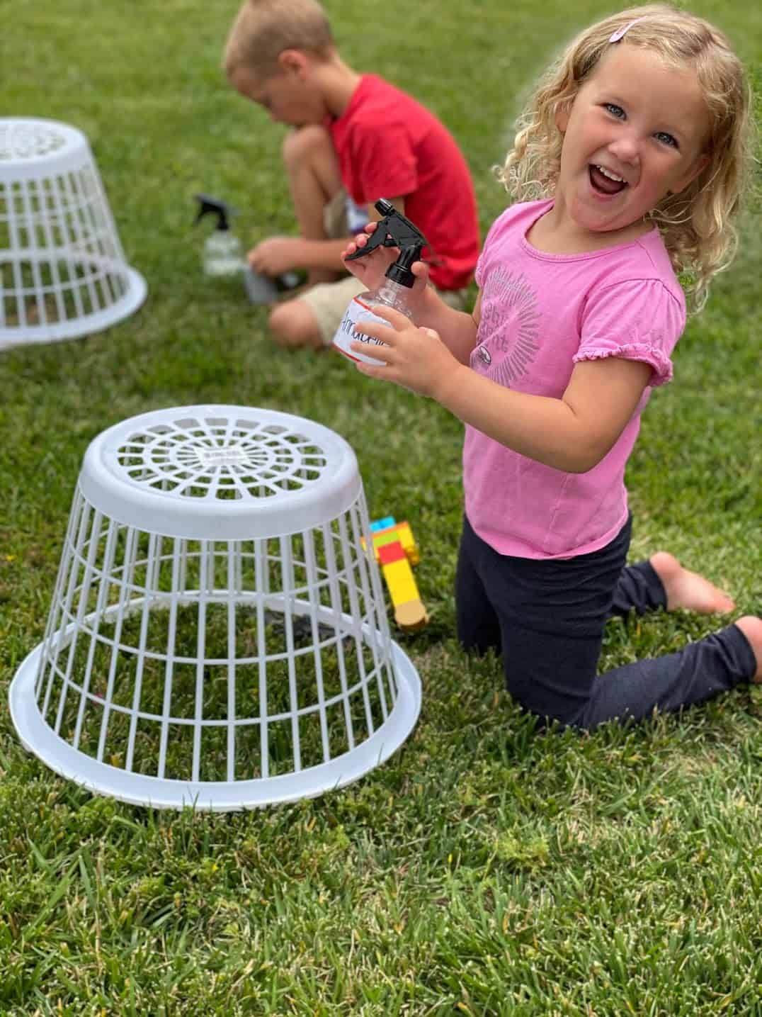 This spray the LEGO down game doesn't need very many materials and is so fast to set up!