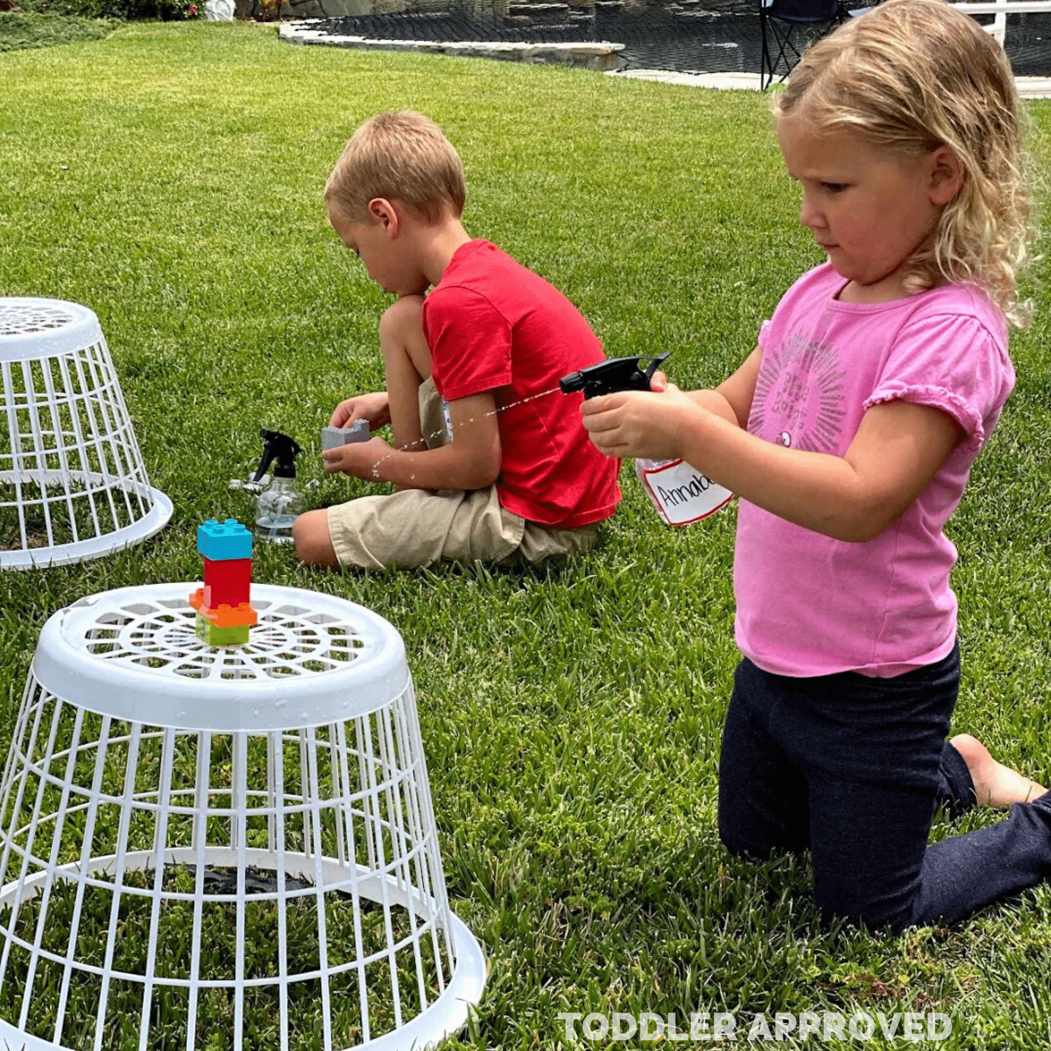 After kids spray down their creations they can build again and make taller or smaller towers.