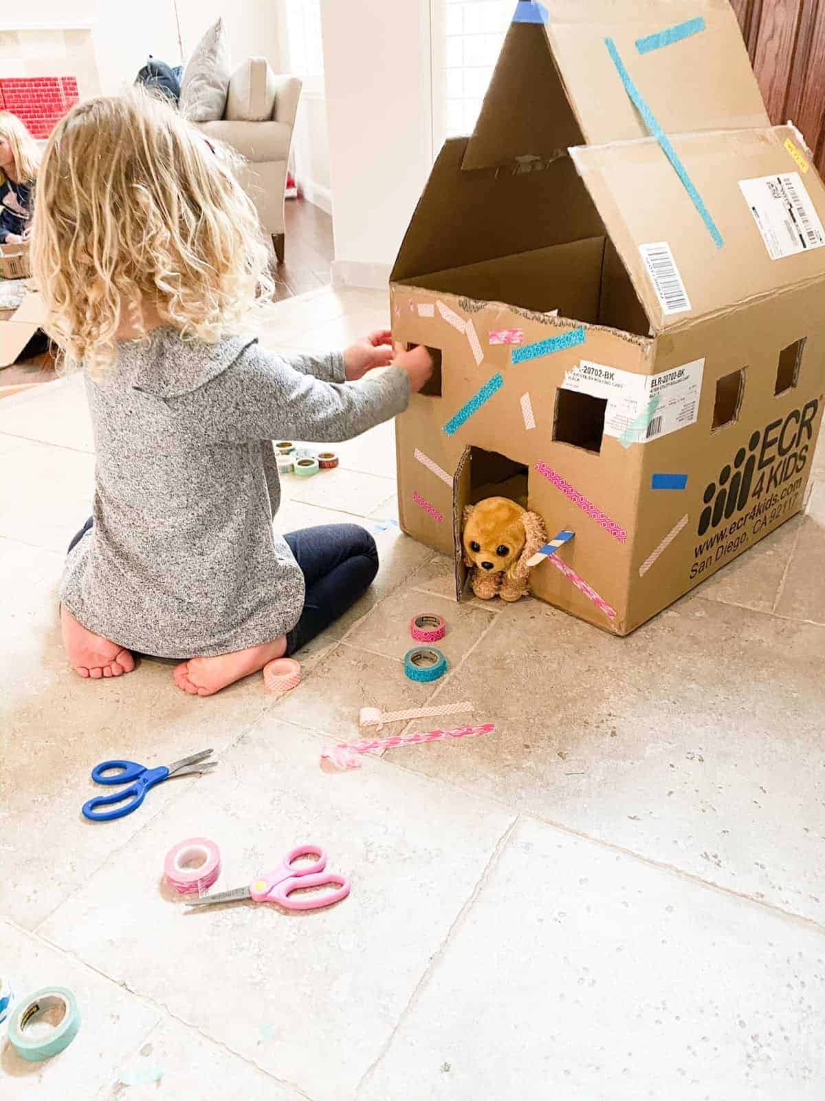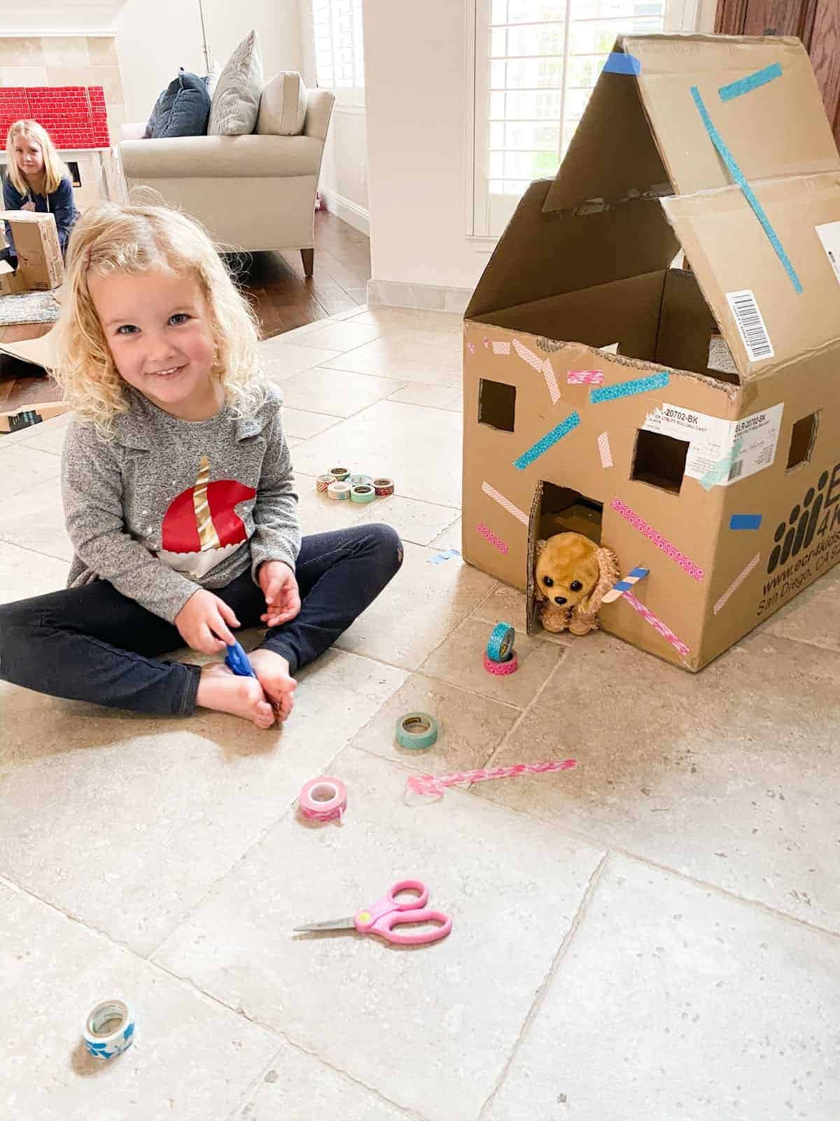 My four-year-old just wanted to cut tape and stick it onto her house, so that's what she did!