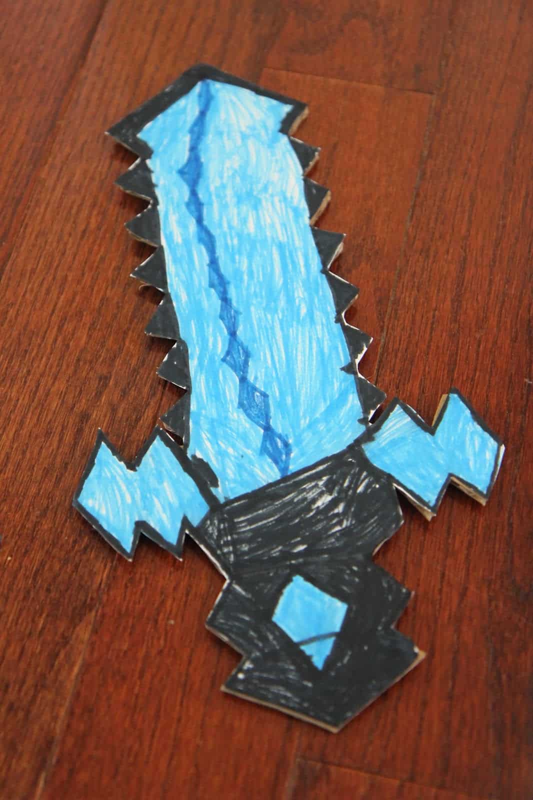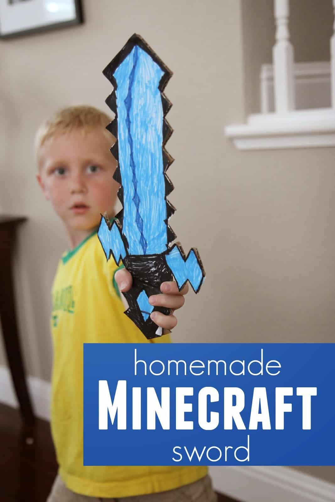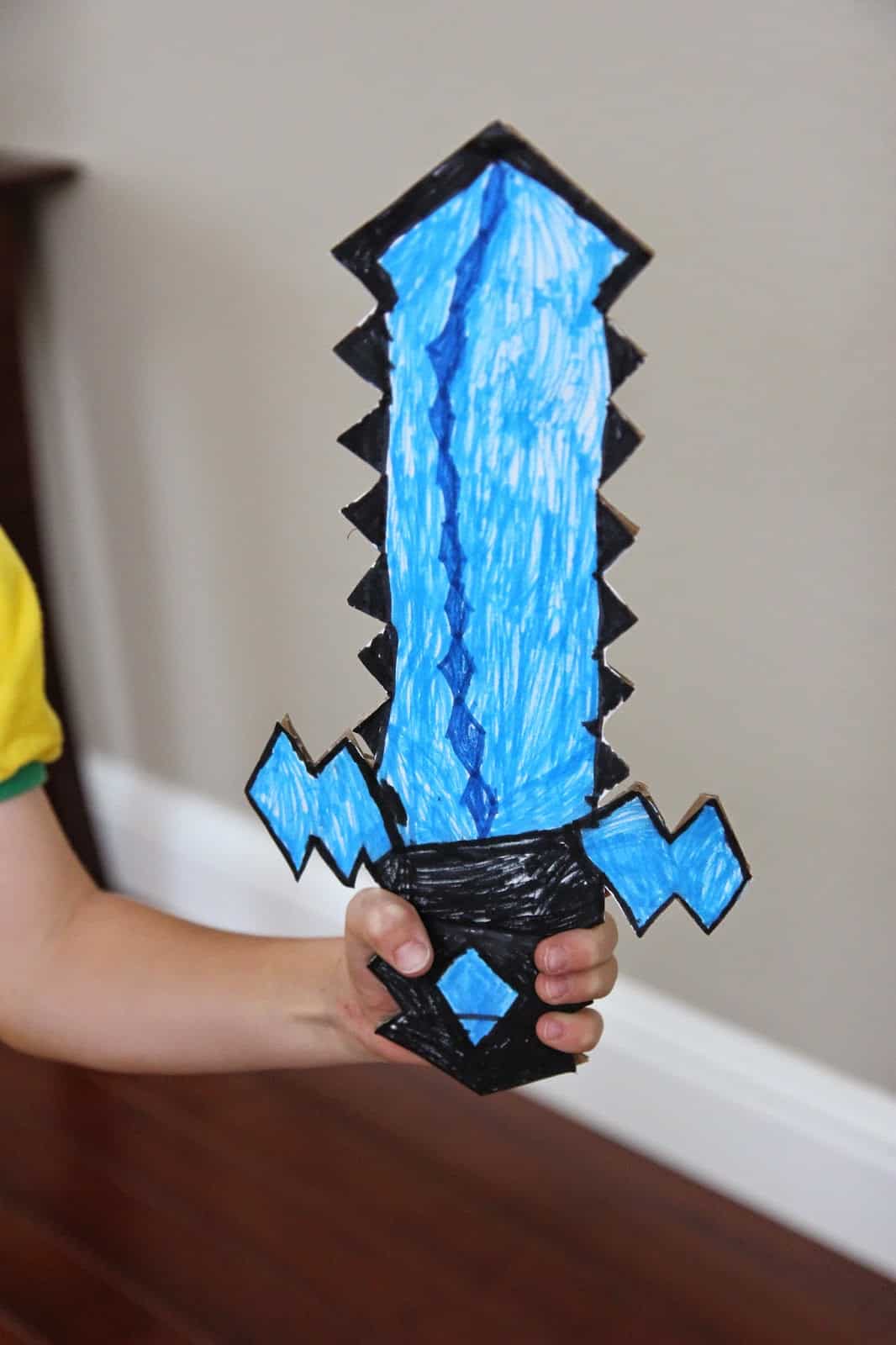Today I am deviating a bit from my normal simple toddler play posts to share a DIY Cardboard Minecraft sword project that my son came up with and wanted to share!
