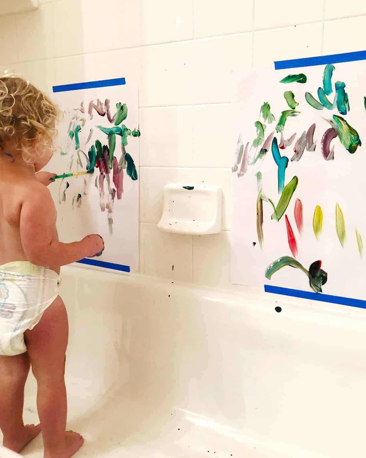 This bath tub art studio idea was introduced to us by Mama Papa Bubba and we love it! You can also just make your own shaving cream bath paint.Â